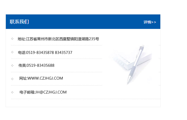 傳真:0519-83435688    郵編:213135    網址:WWW.czjhgj_com.sztanyou.com    電子郵箱:JH@czjhgj_com.sztanyou.com